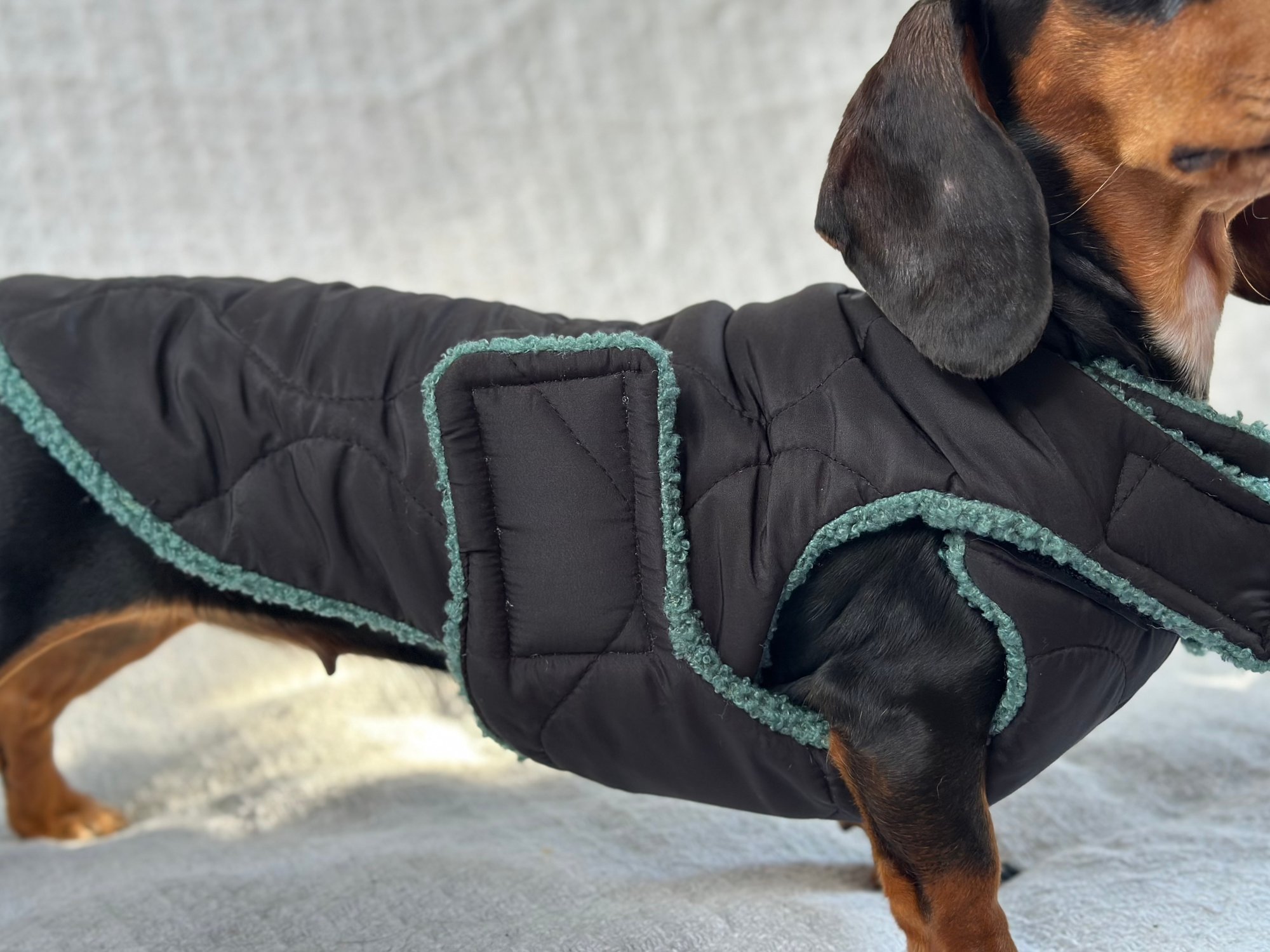 Our Coats are the perfect winter coat for your dachshund or small breed dog! They are made with a more shallow depth for our short legged friends in mind, so their legs do not get caught up in the coat. They are the softest, most snuggly coats you’ll find and have been designed by a dachshund owner who understands their unique body shape.