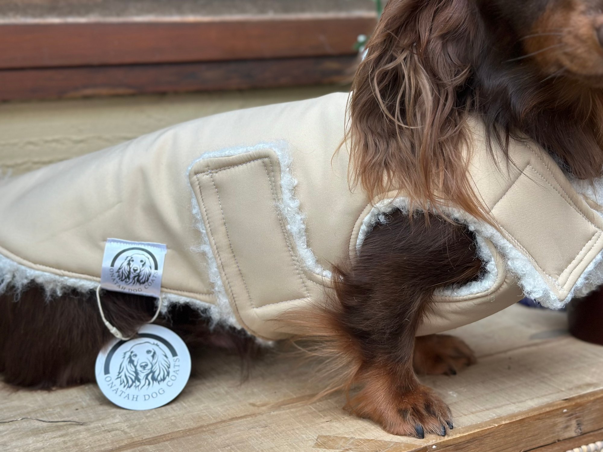 Our Coats are the perfect winter coat for your dachshund or small breed dog! They are made with a more shallow depth for our short legged friends in mind, so their legs do not get caught up in the coat. They are the softest, most snuggly coats you’ll find and have been designed by a dachshund owner who understands their unique body shape.