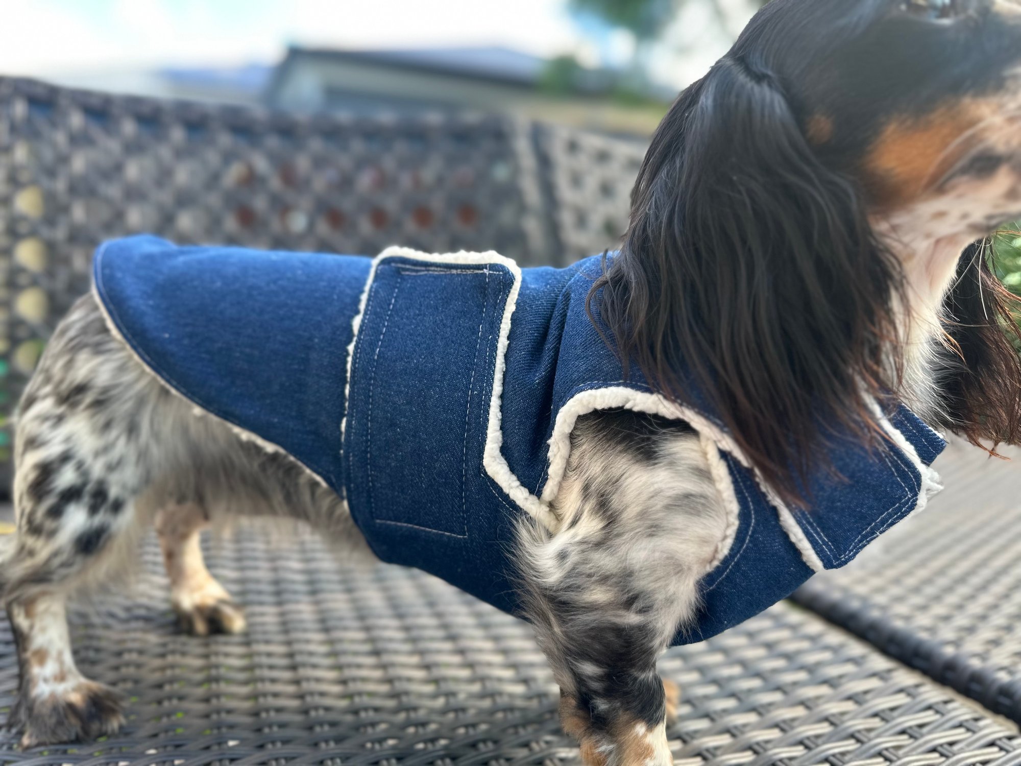 Our Coats are the perfect winter coat for your dachshund or small breed dog! They are made with a more shallow depth for our short legged friends in mind, so their legs do not get caught up in the coat. They are the softest, most snuggly coats you’ll find and have been designed by a dachshund owner who understands their unique body shape.