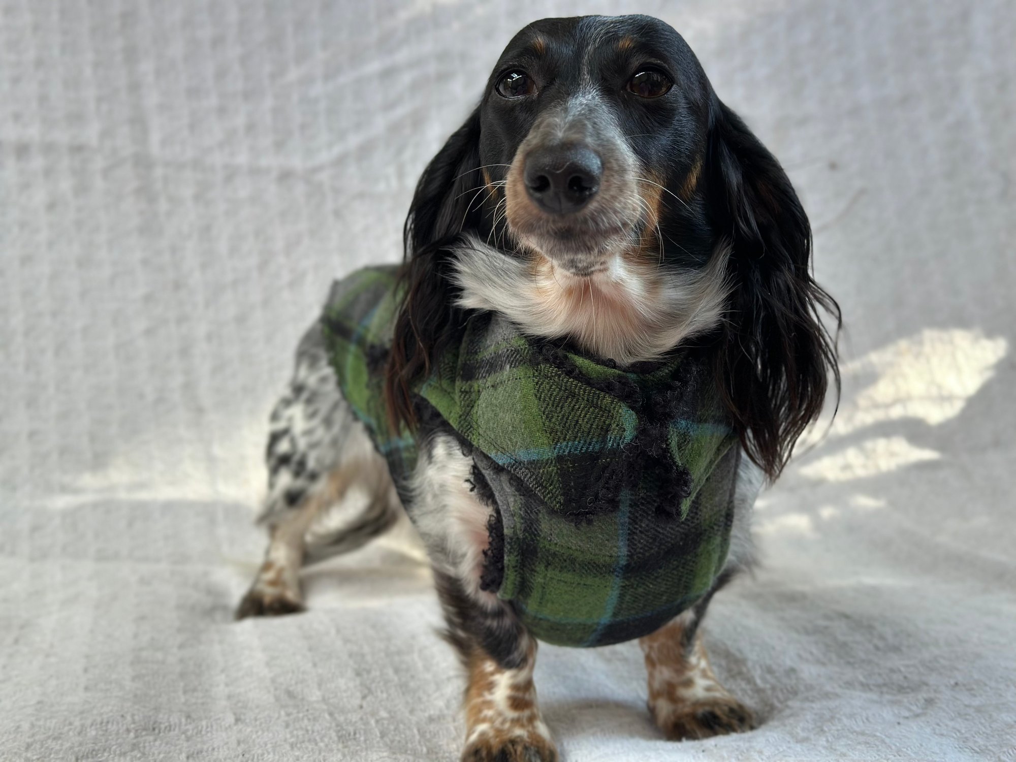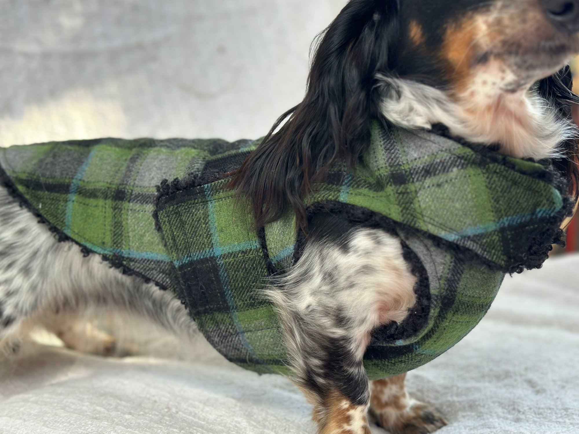 Our Coats are the perfect winter coat for your dachshund or small breed dog! They are made with a more shallow depth for our short legged friends in mind, so their legs do not get caught up in the coat. They are the softest, most snuggly coats you’ll find and have been designed by a dachshund owner who understands their unique body shape.