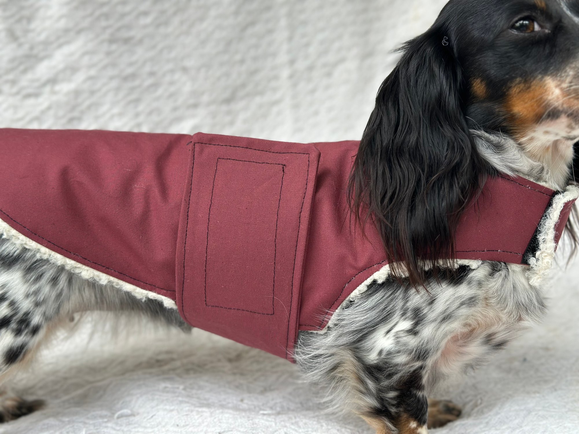 Our Coats are the perfect winter coat for your dachshund or small breed dog! They are made with a more shallow depth for our short legged friends in mind, so their legs do not get caught up in the coat. They are the softest, most snuggly coats you’ll find and have been designed by a dachshund owner who understands their unique body shape.