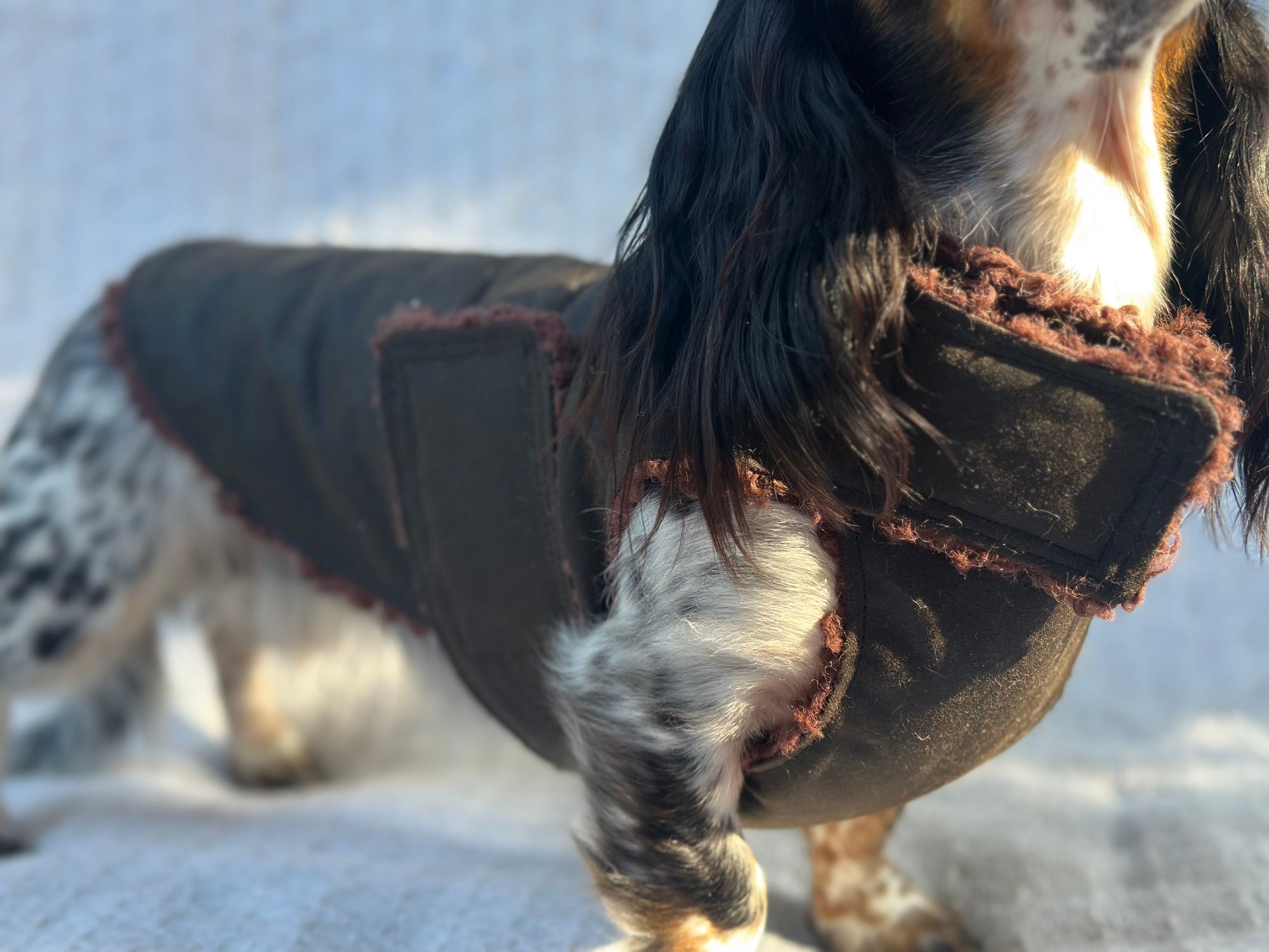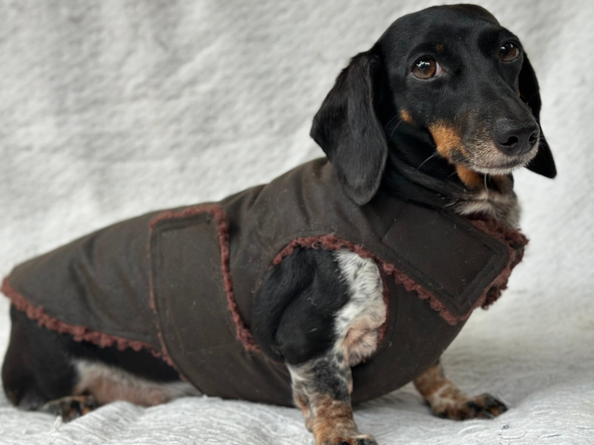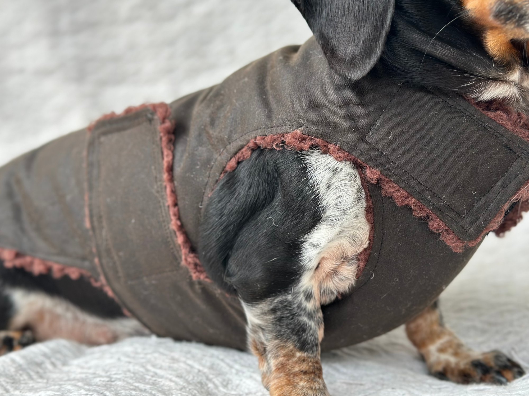 Our Coats are the perfect winter coat for your dachshund or small breed dog! They are made with a more shallow depth for our short legged friends in mind, so their legs do not get caught up in the coat. They are the softest, most snuggly coats you’ll find and have been designed by a dachshund owner who understands their unique body shape.