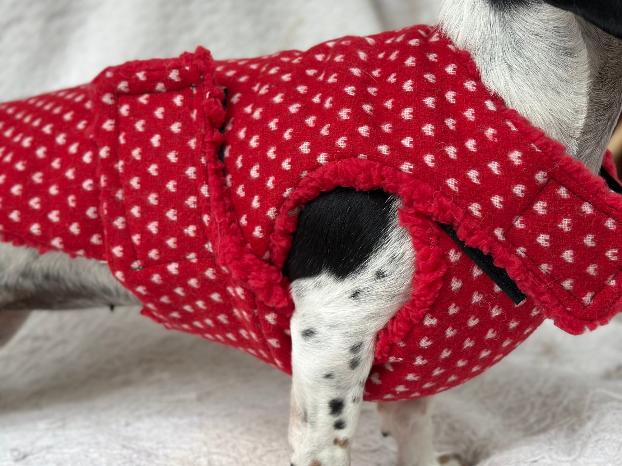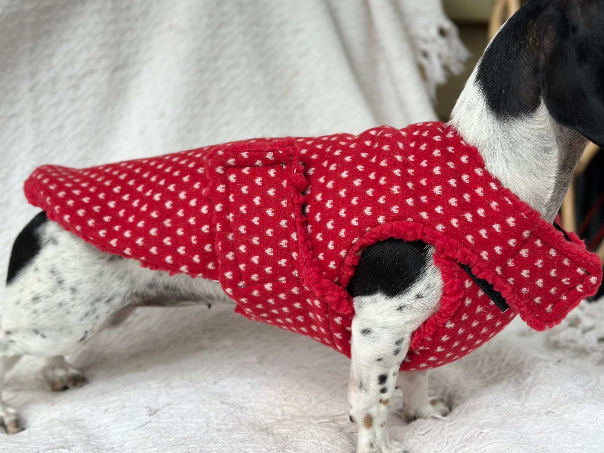 Our Coats are the perfect winter coat for your dachshund or small breed dog! They are made with a more shallow depth for our short legged friends in mind, so their legs do not get caught up in the coat. They are the softest, most snuggly coats you’ll find and have been designed by a dachshund owner who understands their unique body shape.