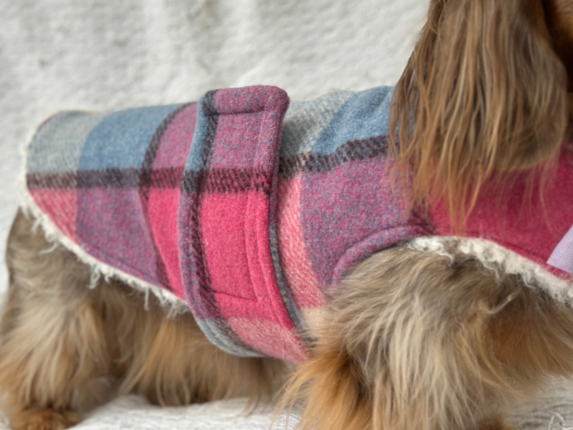 Our Coats are the perfect winter coat for your dachshund or small breed dog! They are made with a more shallow depth for our short legged friends in mind, so their legs do not get caught up in the coat. They are the softest, most snuggly coats you’ll find and have been designed by a dachshund owner who understands their unique body shape.