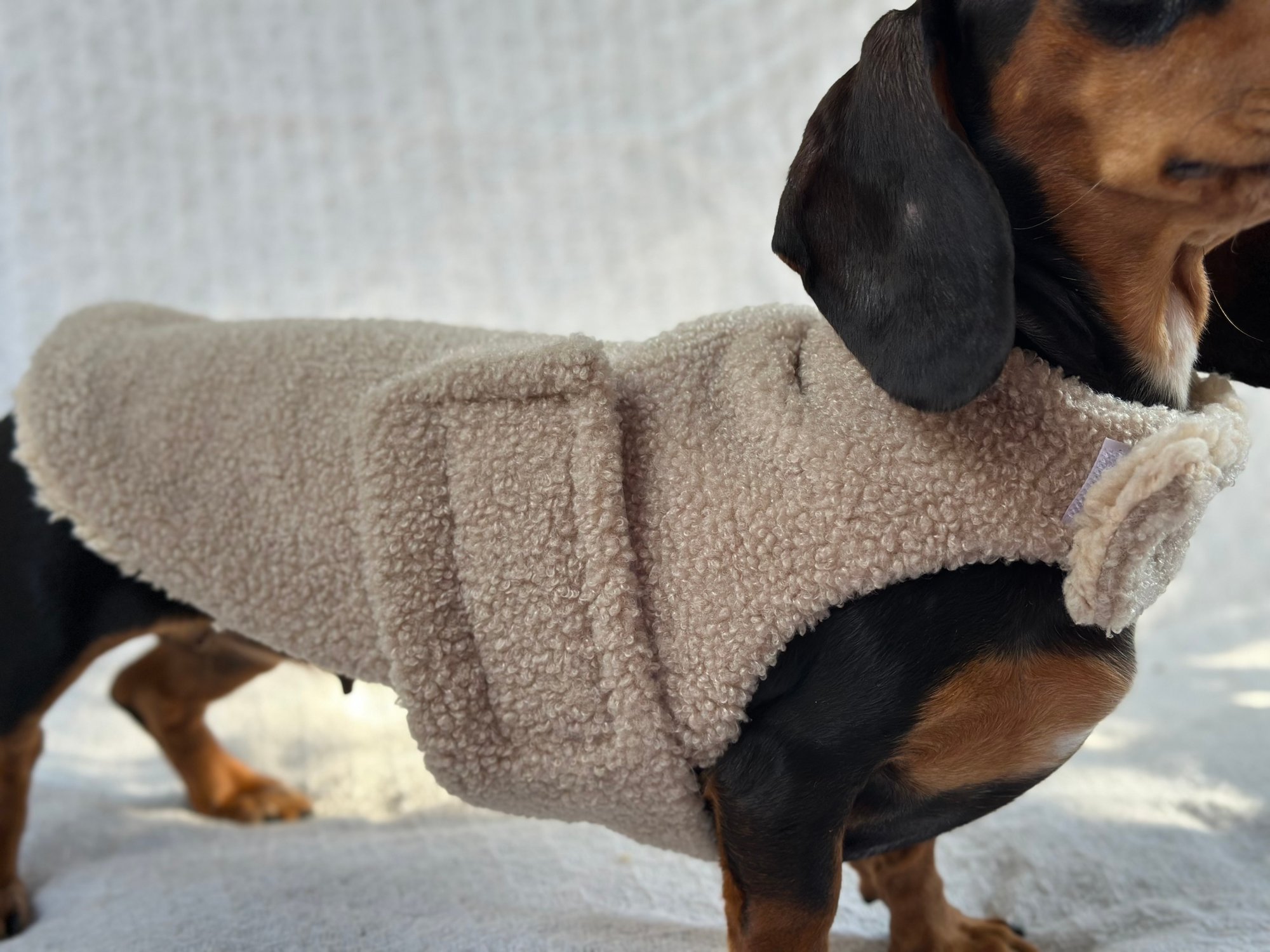 Our Coats are the perfect winter coat for your dachshund or small breed dog! They are made with a more shallow depth for our short legged friends in mind, so their legs do not get caught up in the coat. They are the softest, most snuggly coats you’ll find and have been designed by a dachshund owner who understands their unique body shape.