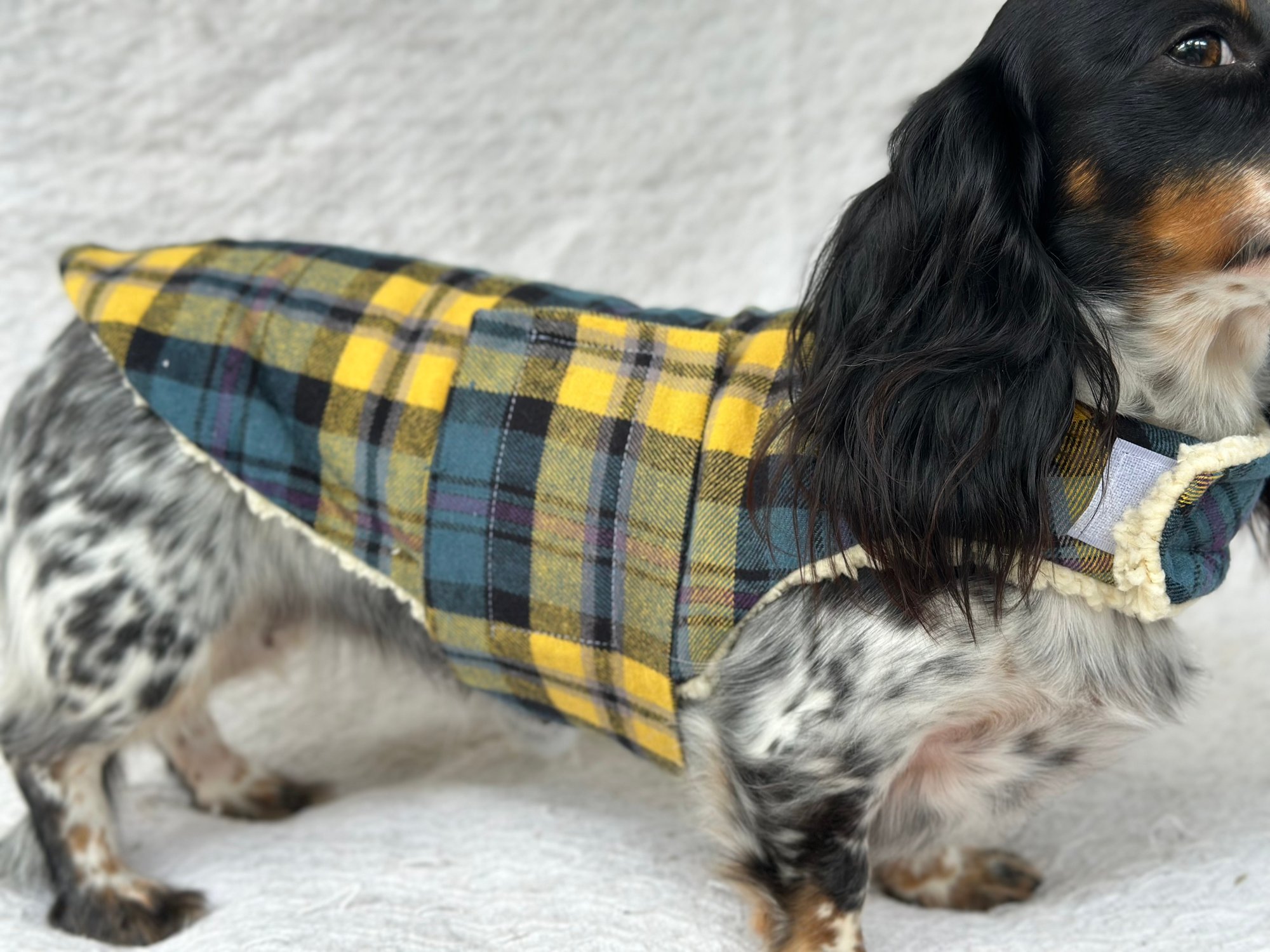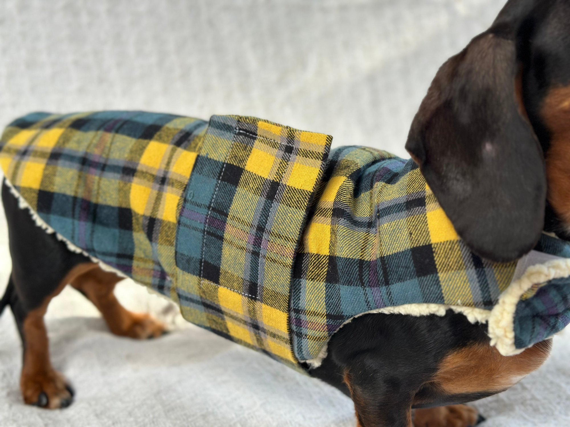Our Coats are the perfect winter coat for your dachshund or small breed dog! They are made with a more shallow depth for our short legged friends in mind, so their legs do not get caught up in the coat. They are the softest, most snuggly coats you’ll find and have been designed by a dachshund owner who understands their unique body shape.